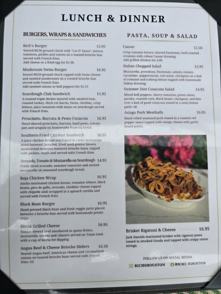 The menu features a range of options from hearty favorites like the Rebar Burger with fries and the distinctive Birria Grilled Cheese, to lighter selections such as the Summer Zesty Couscous Salad and Avocado Toast. Shareable appetizers like Fried Goat Cheese Balls and Cap'n Crunch Onion Rings provide perfect starters or accompaniments to cocktails.